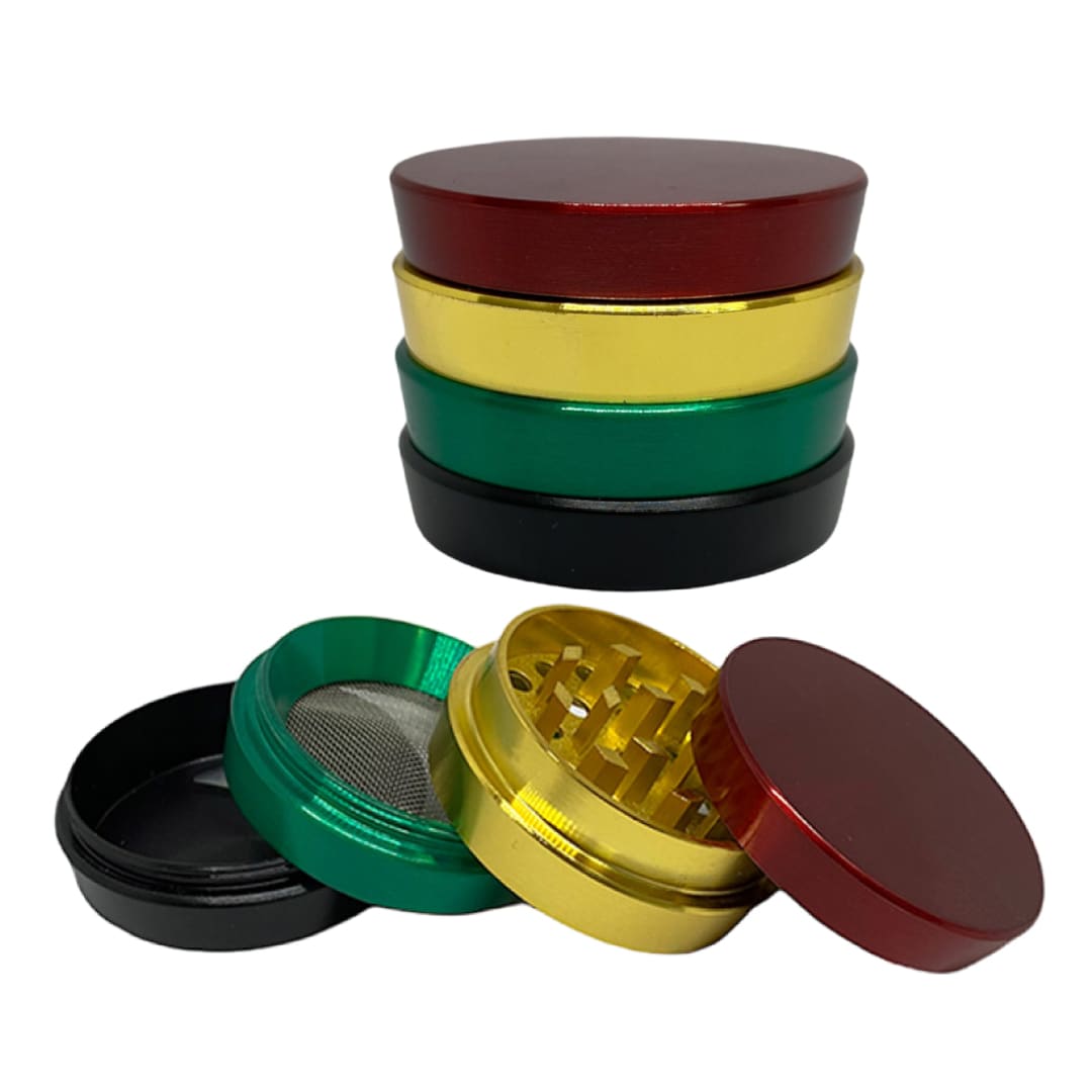 Moledor de 4 partes con una medida de 40mm de diámetro. Diseño tricolor con los icónicos colores de jamaica.